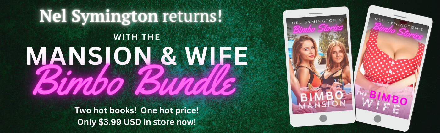 Nel Symington returns with two hot new tales of hypnotic bimbofication! The new bundle contains the erotic stories "Bimbo Mansion" and "The Bimbo Wife" - get yours now in the ATR store!